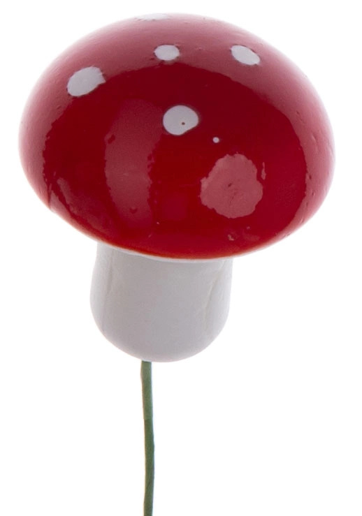 Oferta przedstawia muchomora na druciku. Muchomor idealny do jesiennych dekoracji. Opakowanie zawiera 12 sztuki