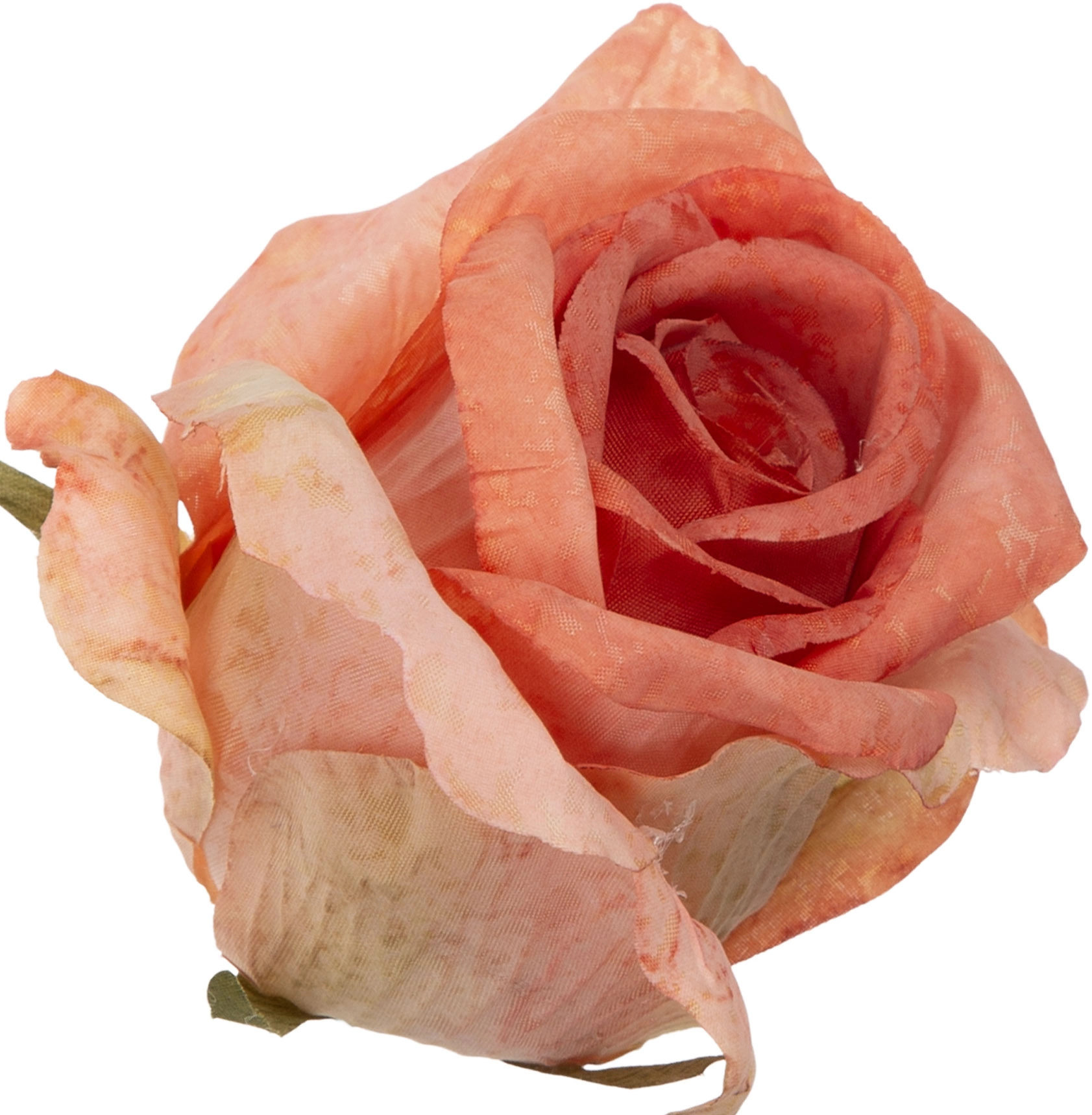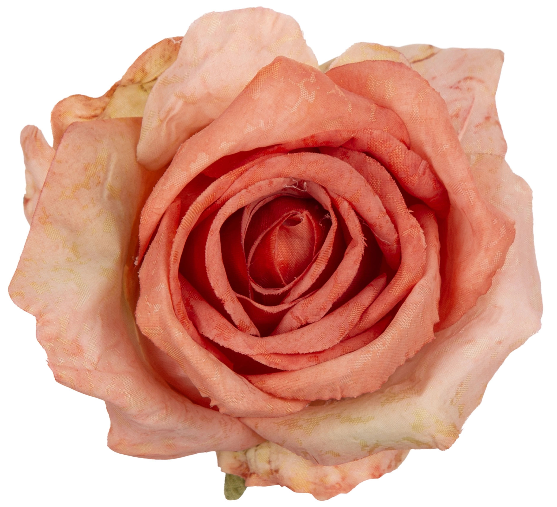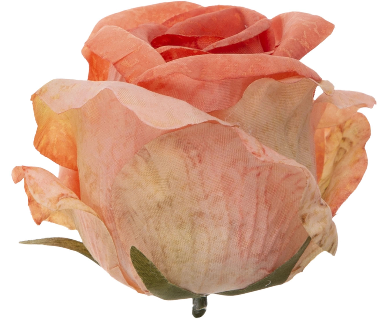 Oferta przedstawia dużą główkę róży wyrobowej. Produkt został wykonany z wysokiej jakości materiału. Główka róży jest w kolorze SALMON. Na odwrocie znajdują się zielone listki o nierównym kształcie i rozmiarze. Róża posiada gęsto osadzone płatki w różnych rozmiarach, co nadaje jej objętości. Dodatkowo róża posiada miejsce na drut wyrobowy lub łodygę. Kwiat idealny do dekoracji, lub kompozycji florystycznych. Opakowanie zawiera 12 sztuk. Na innej naszej aukcji duży wybór łodyg i liści róży.