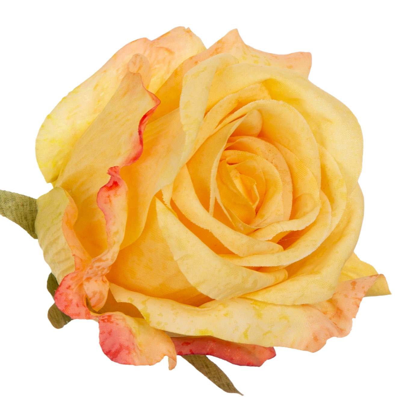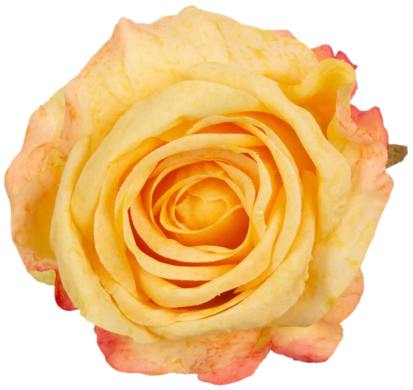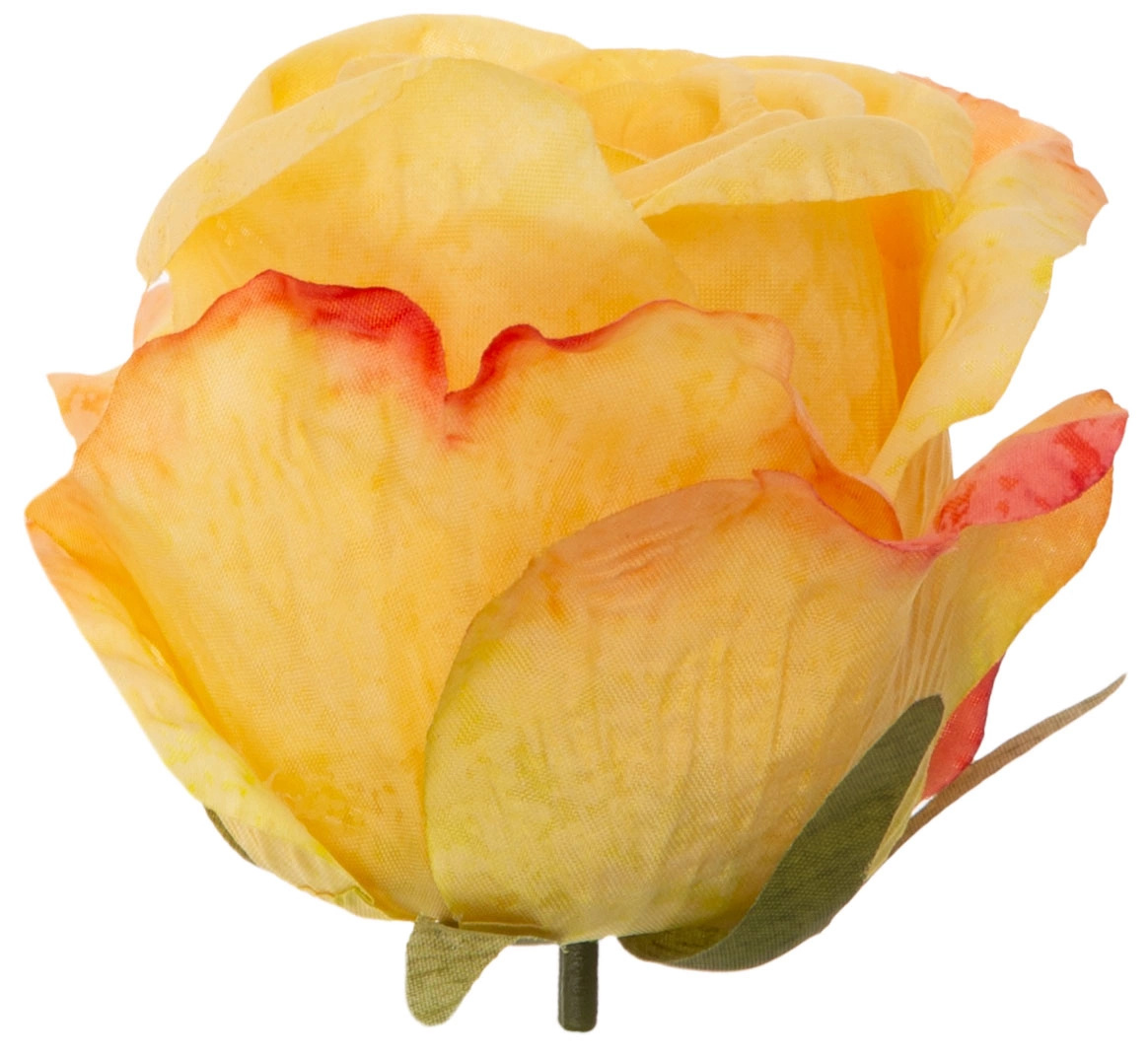 Oferta przedstawia dużą główkę róży wyrobowej. Produkt został wykonany z wysokiej jakości materiału. Główka róży jest w kolorze YELLOW. Na odwrocie znajdują się zielone listki o nierównym kształcie i rozmiarze. Róża posiada gęsto osadzone płatki w różnych rozmiarach, co nadaje jej objętości. Dodatkowo róża posiada miejsce na drut wyrobowy lub łodygę. Kwiat idealny do dekoracji, lub kompozycji florystycznych. Opakowanie zawiera 12 sztuk. Na innej naszej aukcji duży wybór łodyg i liści róży.