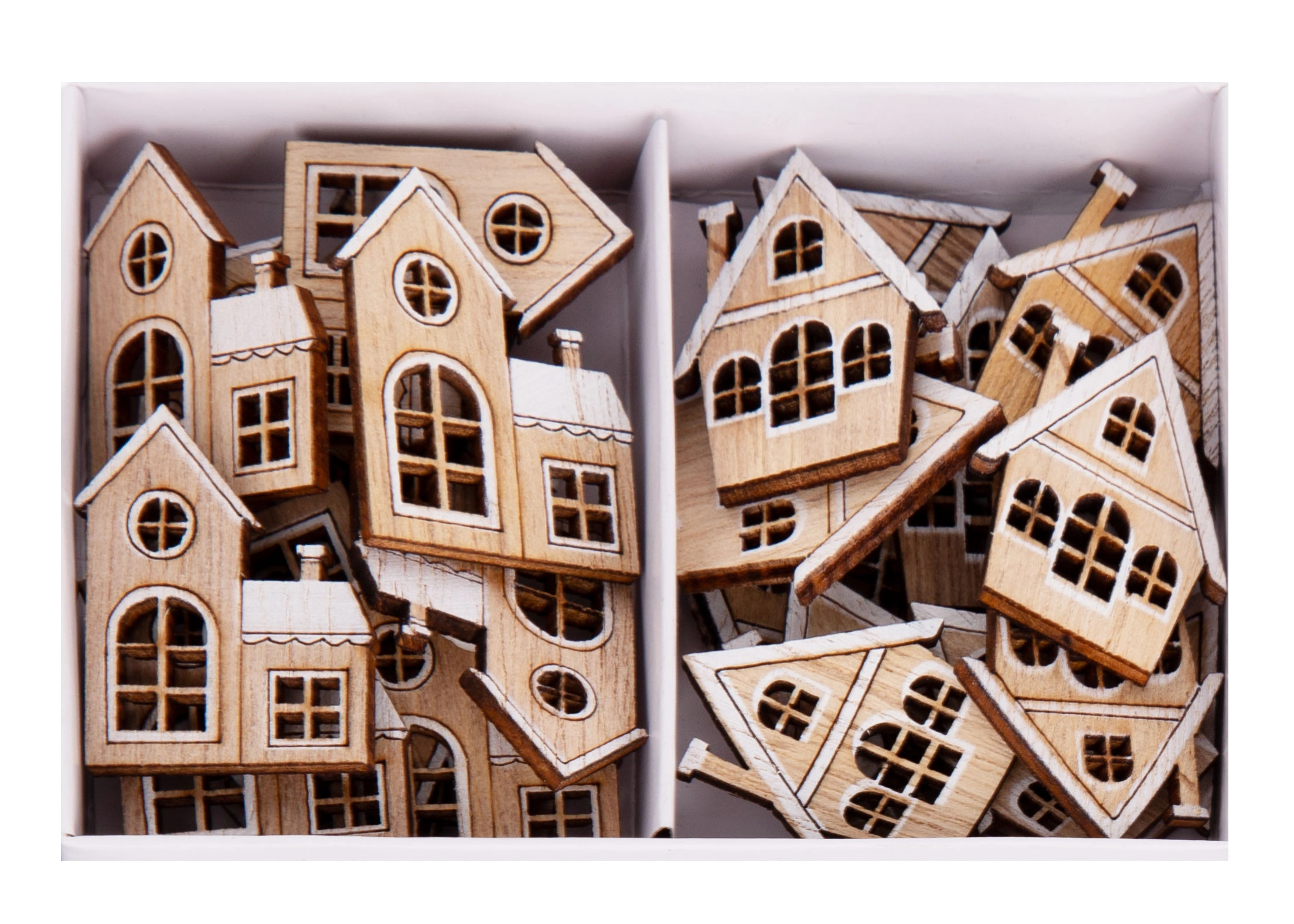 Oferta przedstawia naklejki ze sklejki. Wykrawki idealne do zdobienia, kartek, prezentów, bukietów, wianków. W opakowaniu 24 sztuki.
