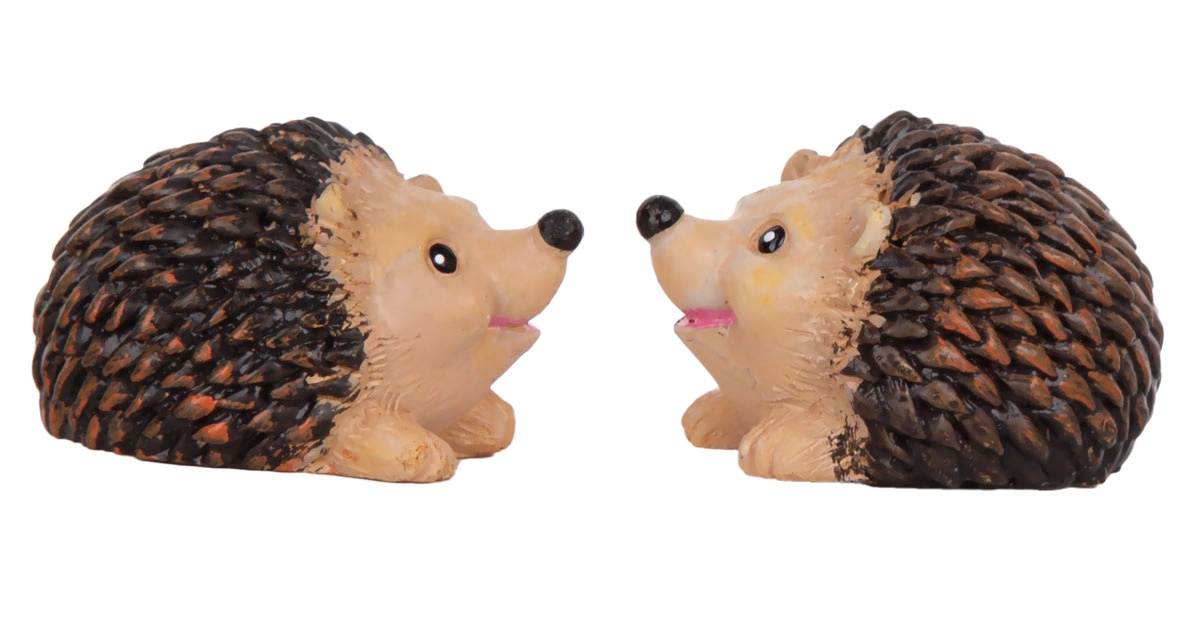Oferta przedstawia figurkę jeża wykonaną z poliresingu. Jeż idealny do jesiennych dekoracji. Opakowanie 2 sztuki.
