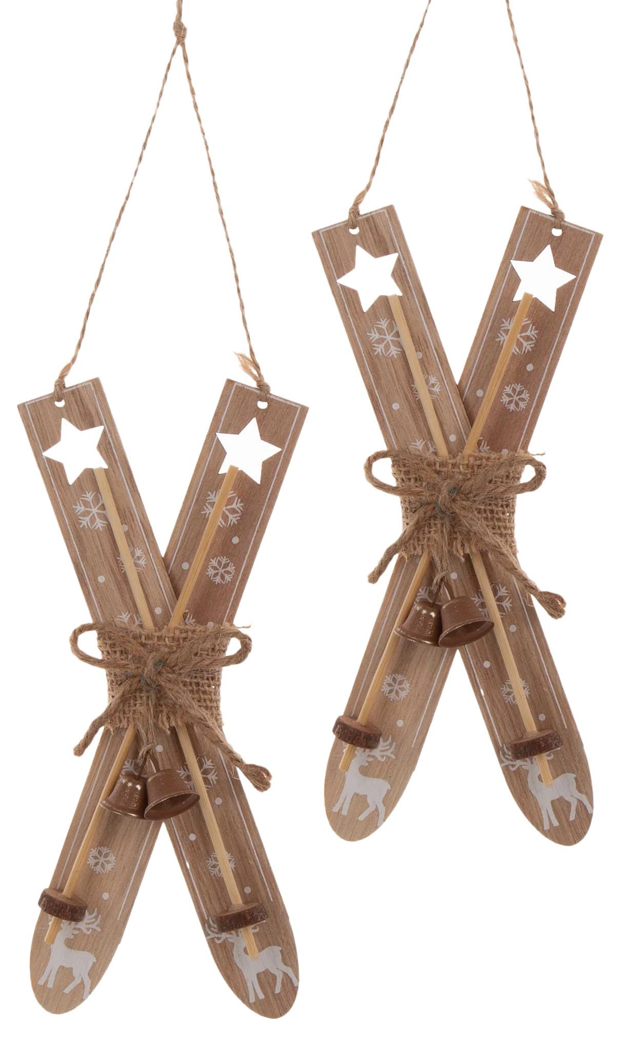 Oferta przedstawia drewniane narty. Ozdoba idealna do dekoracji w okresie zimowo – świątecznym. Opakowanie 2 sztuk.