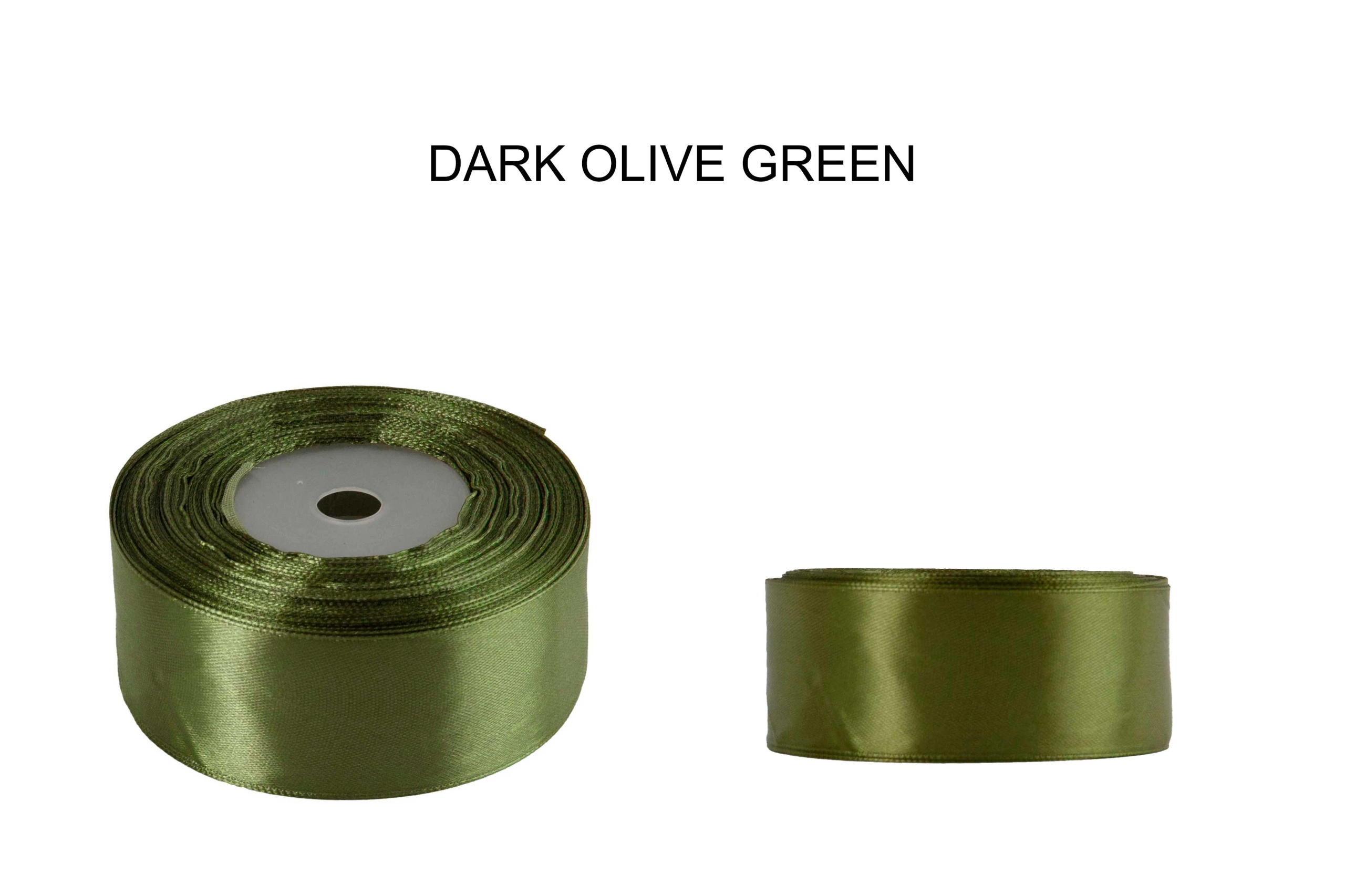 Oferta przedstawia wstążkę atłasową w kolorze ciemnej oliwki.