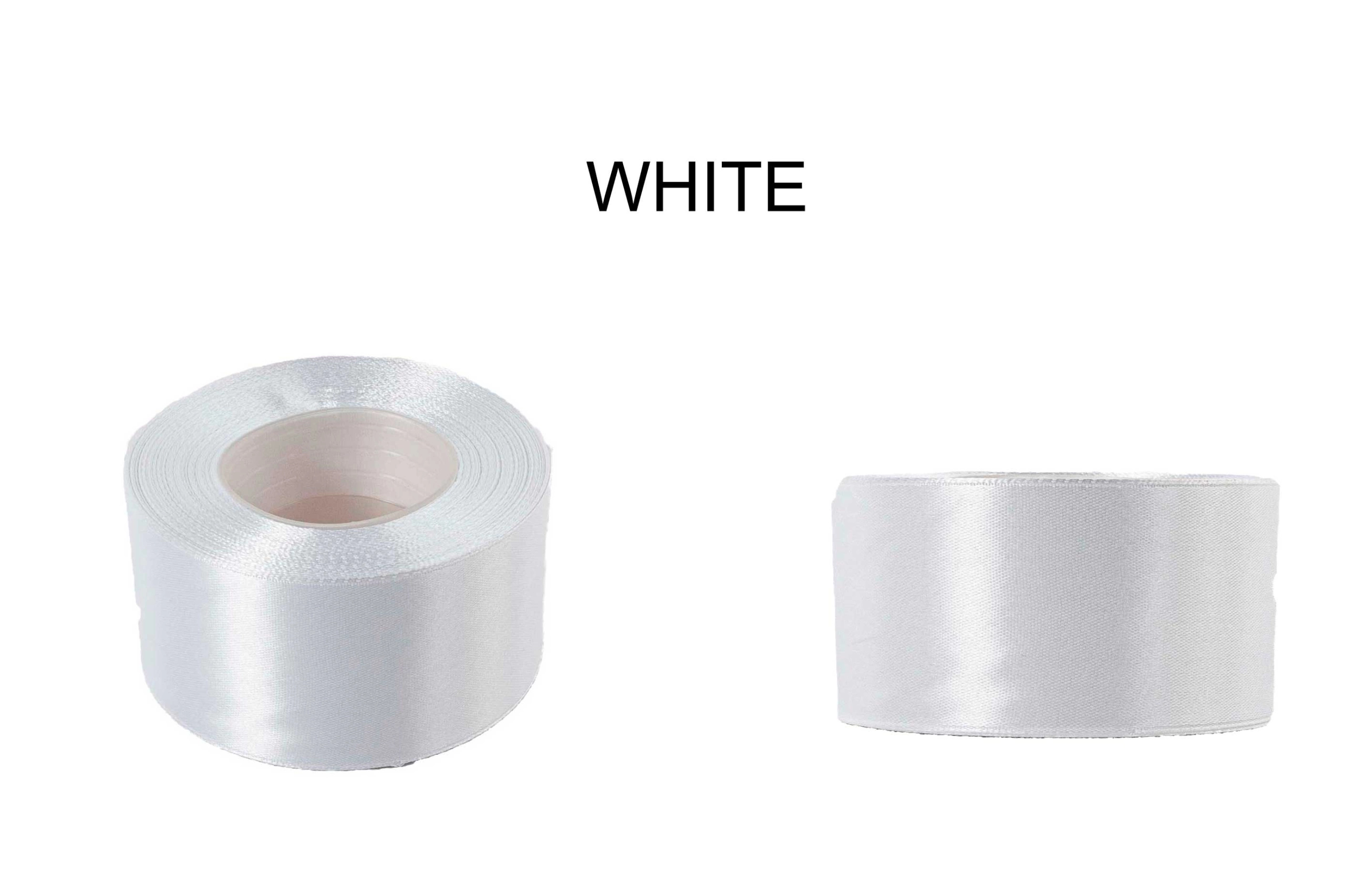 Oferta przedstawia wstążkę atłasową w kolorze białym.