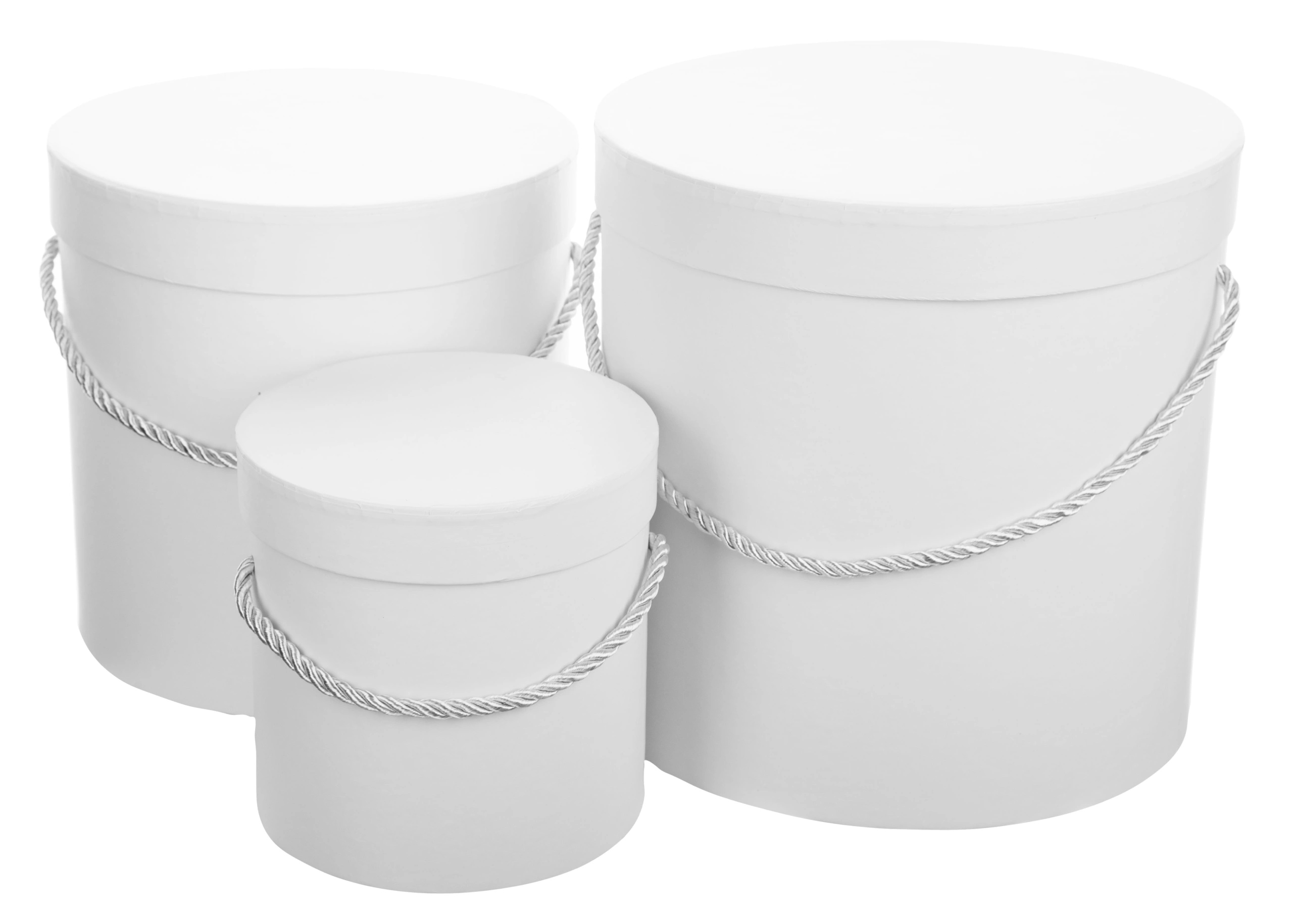 Oferta przedstawia pudełka ozdobne białe. Flower box sprawdzi się do ułożenia kompozycji florystycznych, opakowania prezentu, do przechowywania drobiazgów. Opakowanie zawiera trzy sztuki w różnych rozmiarach.