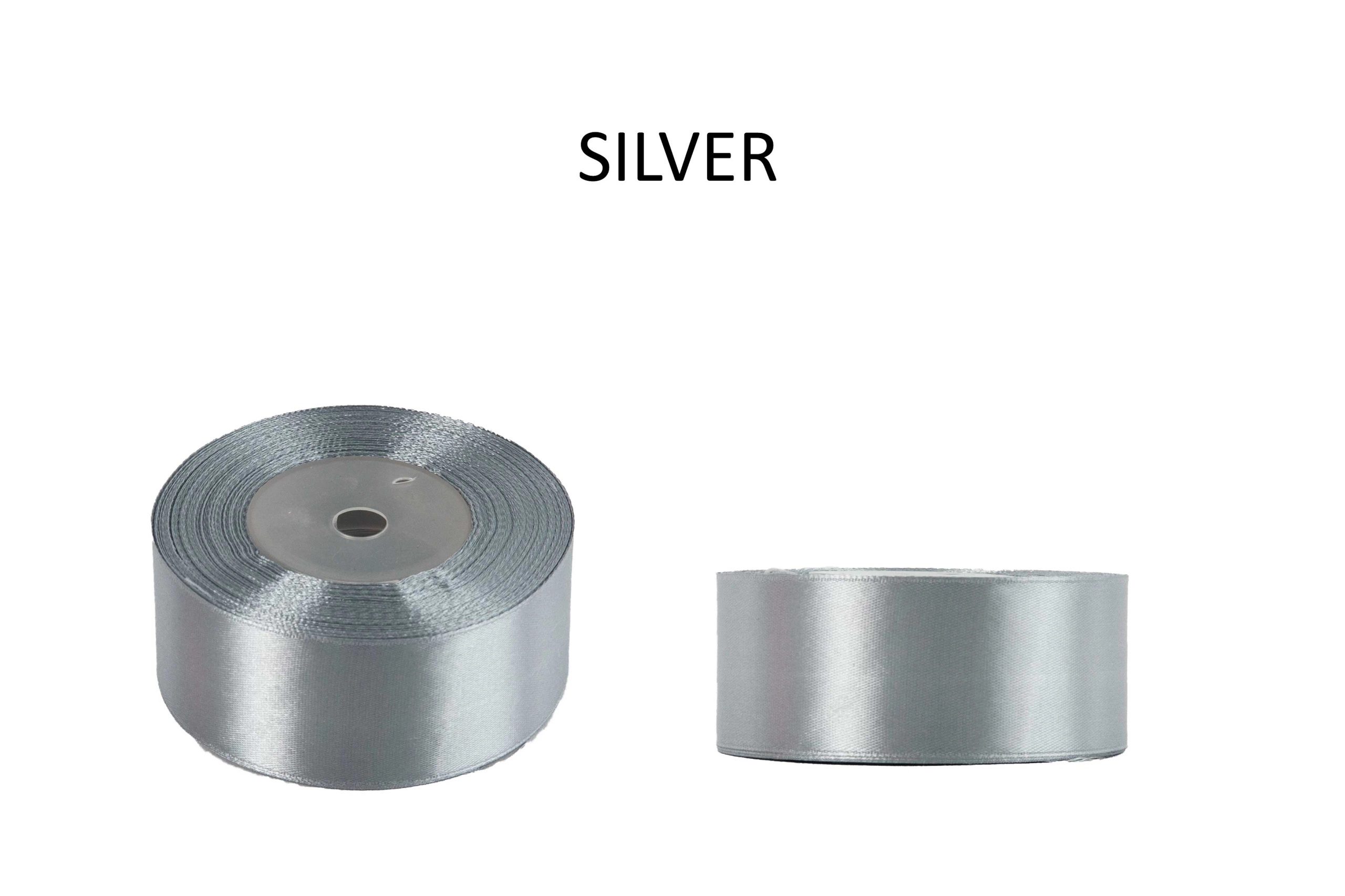 Oferta przedstawia wstążkę atłasową w kolorze srebrnym.