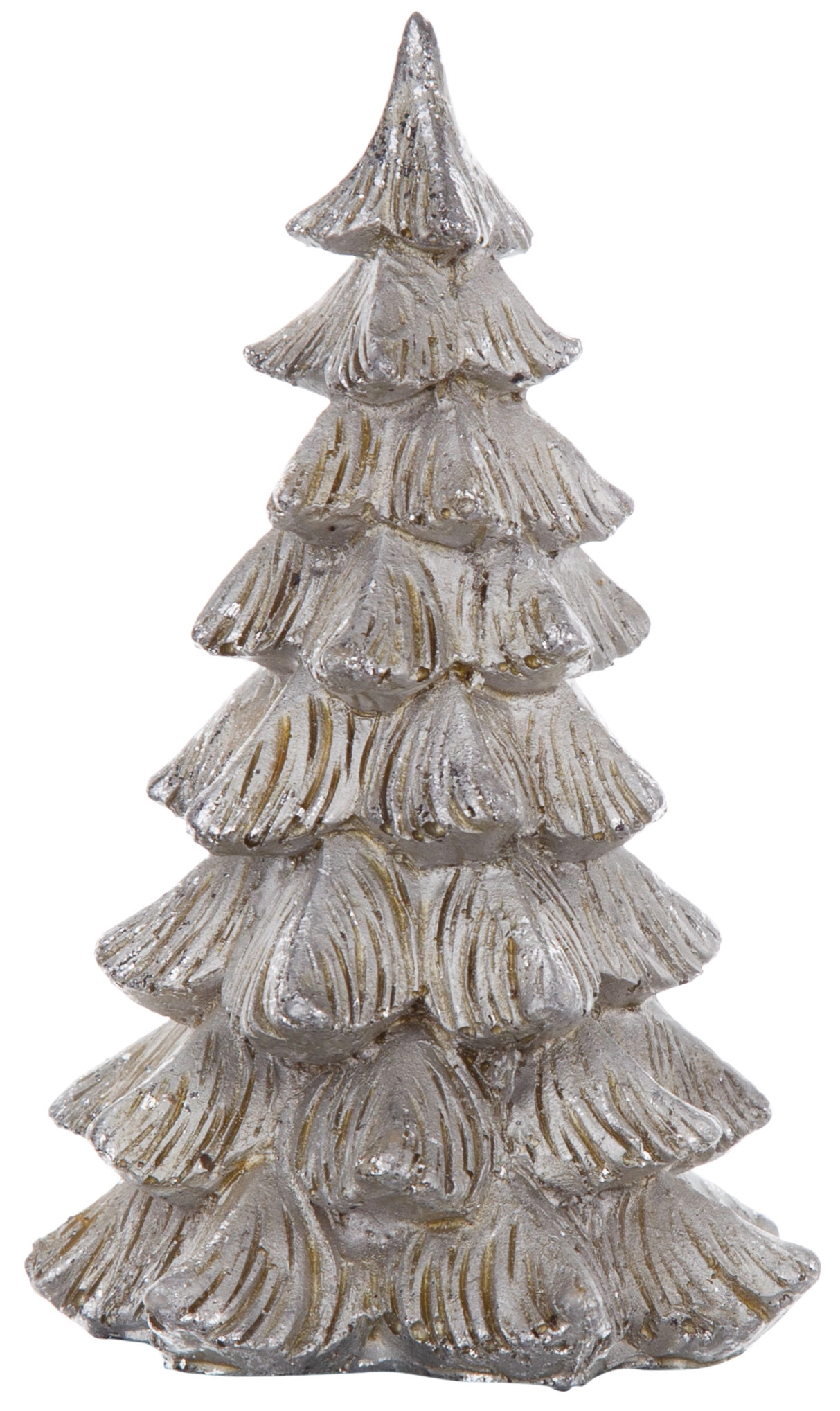Oferta przedstawia figurkę choinki. Figurka wykonana z poliresingu w kolorze srebrnym . Dekoracja doskonała jako element wystroju wnętrz w okresie świąteczno – zimowym.