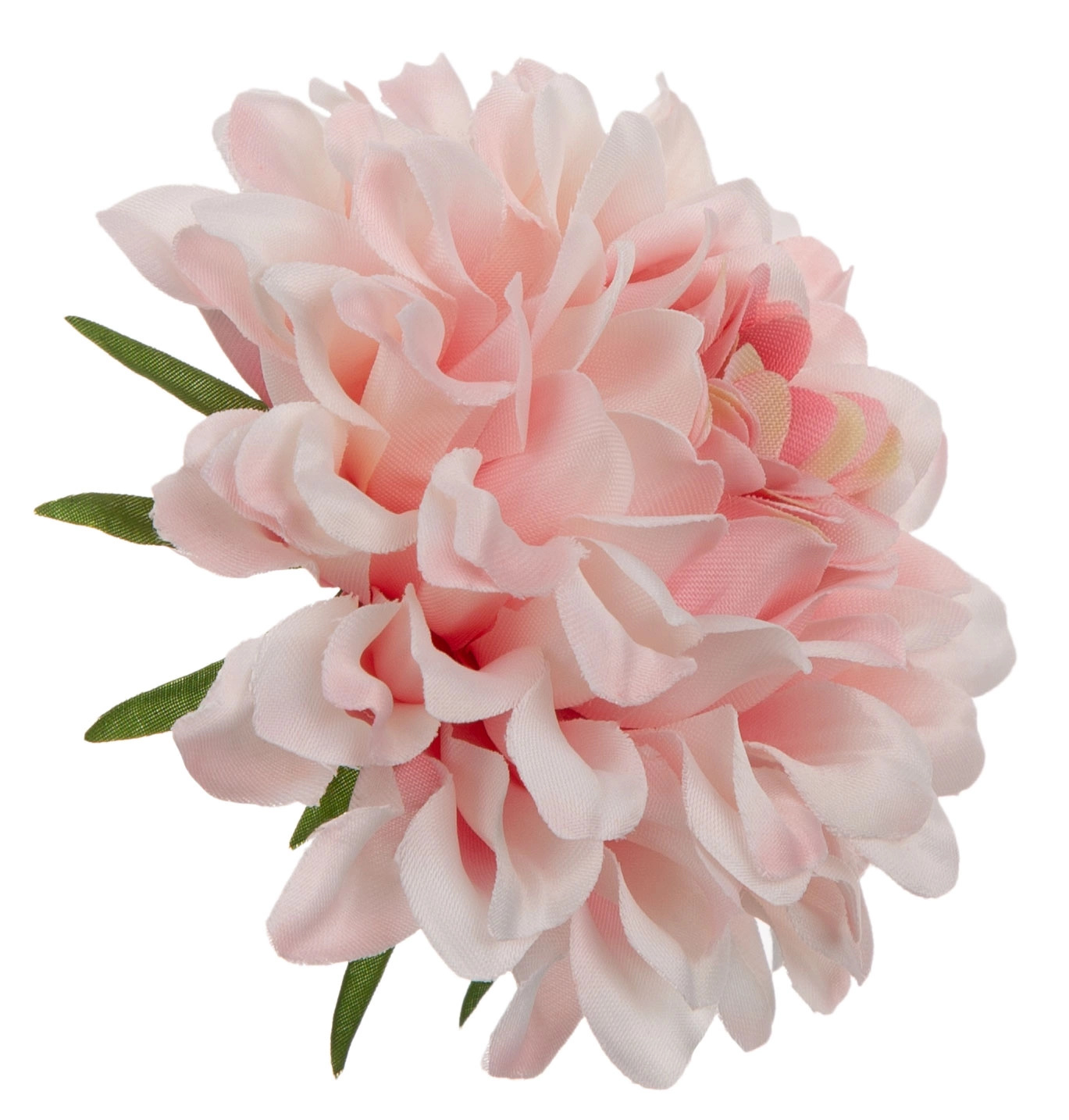 Oferta przedstawia główkę dalii wyrobowej. Produkt został wykonany z wysokiej jakości materiału. Główka dalii jest w kolorze kremowo – różowym ( CREAM LT PINK ). Na odwrocie znajdują się zielone listki o nierównym kształcie i rozmiarze. Dalia posiada gęsto osadzone płatki w różnych rozmiarach, co nadaje jej objętości. Dodatkowo dalia posiada miejsce na drut wyrobowy lub łodygę. Kwiat idealny do dekoracji, lub kompozycji florystycznych. Opakowanie zawiera 12 sztuk.