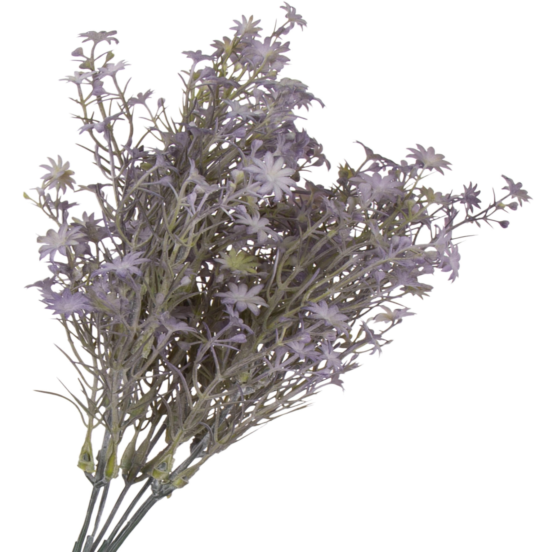 Oferta przedstawia dodatek sztuczny, wykonany z tworzywa sztucznego. Kwiatki w kolorze fioletowym, delikatnie bielone.