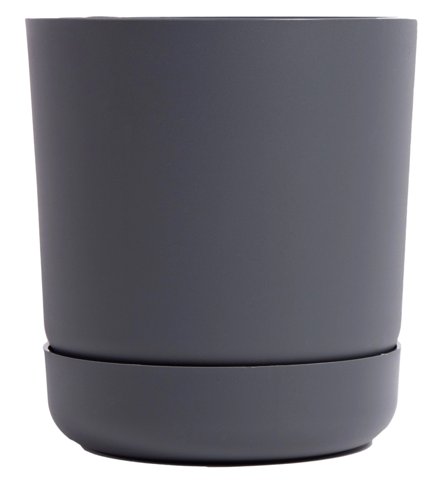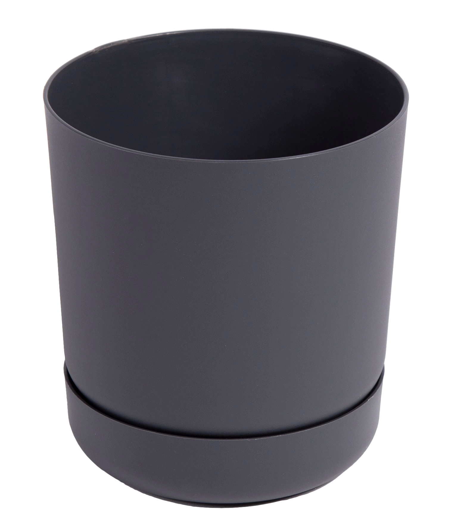 Oferta przedstawia doniczkę plastikową z podstawkiem. Osłonka wykonana z wysokiej jakości tworzywa sztucznego w kolorze antracytu. Osłonka posiada nawiercone dziurki odpływowe.