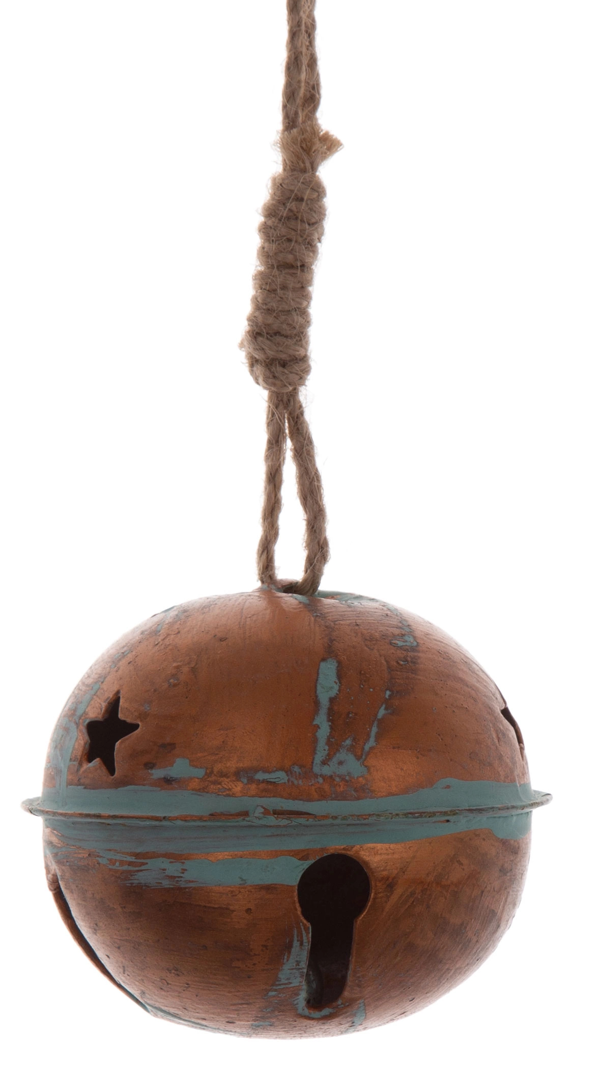 Oferta przedstawia metalowy dzwonek w kolorze miedzianym.