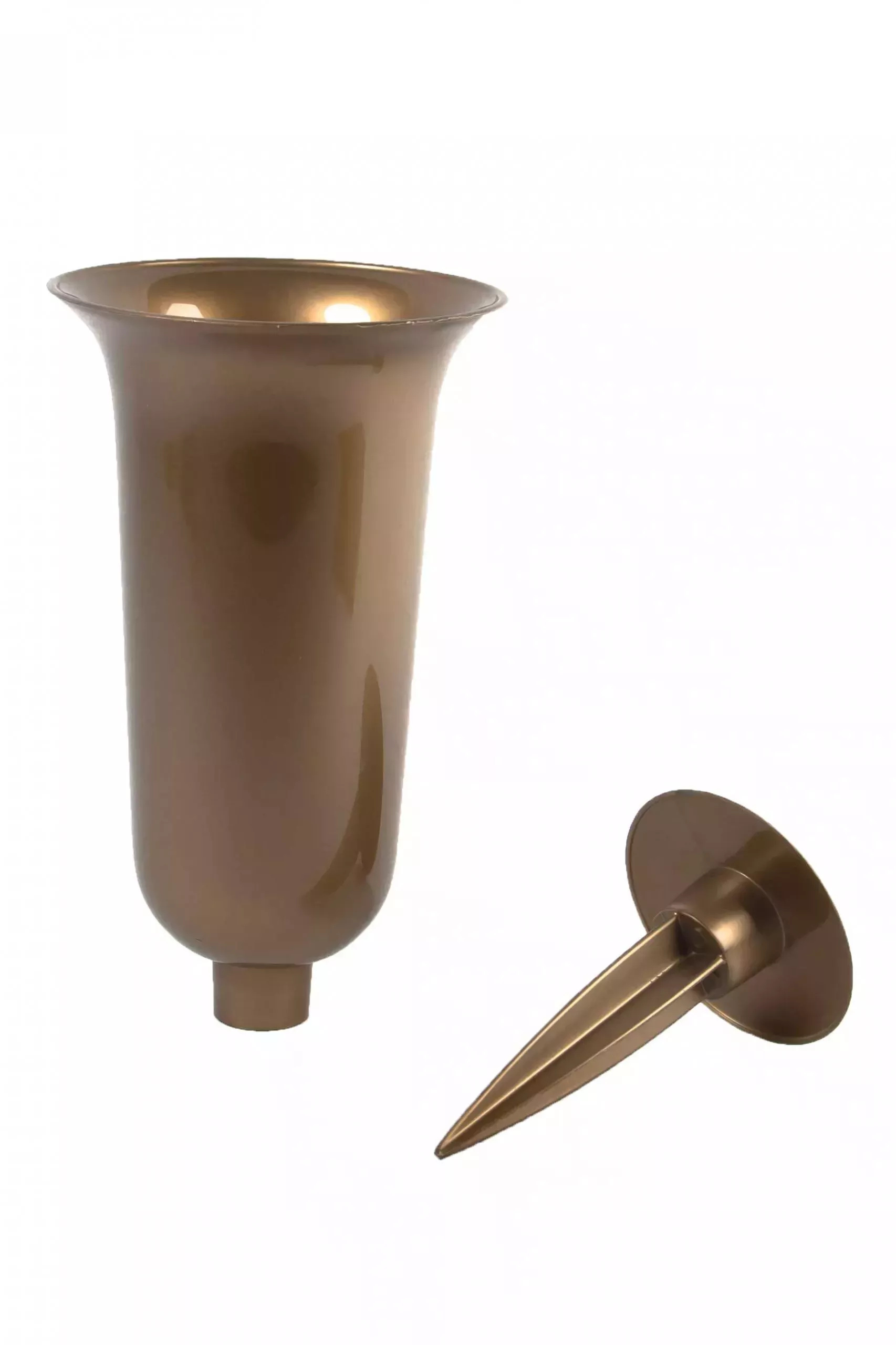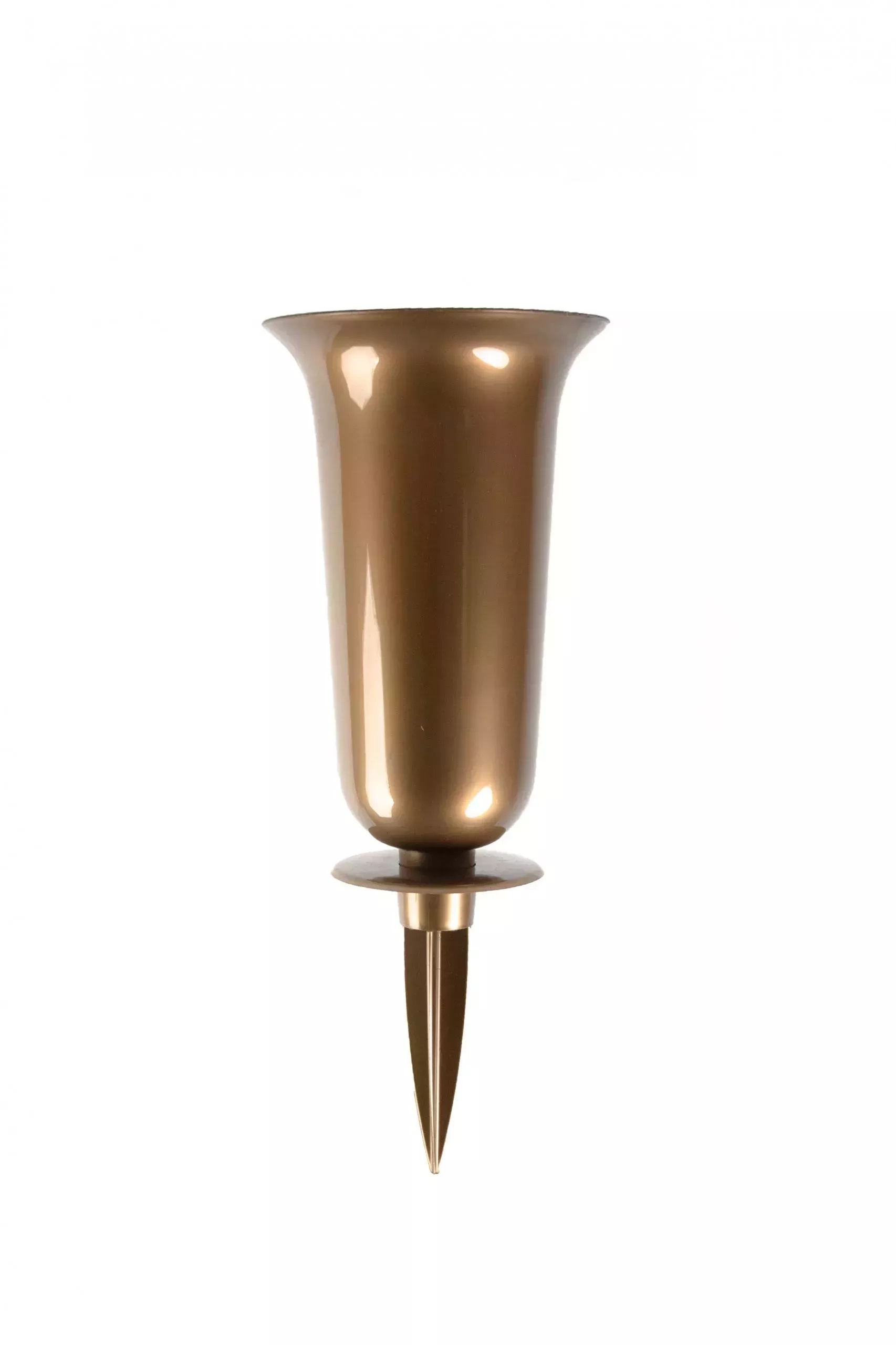 Oferta przedstawia wazon / flakon wbijany w kolorze złotym, wykonany z wysokiej jakości tworzywa sztucznego. Produkt doskonały do kompozycji nagrobnych.