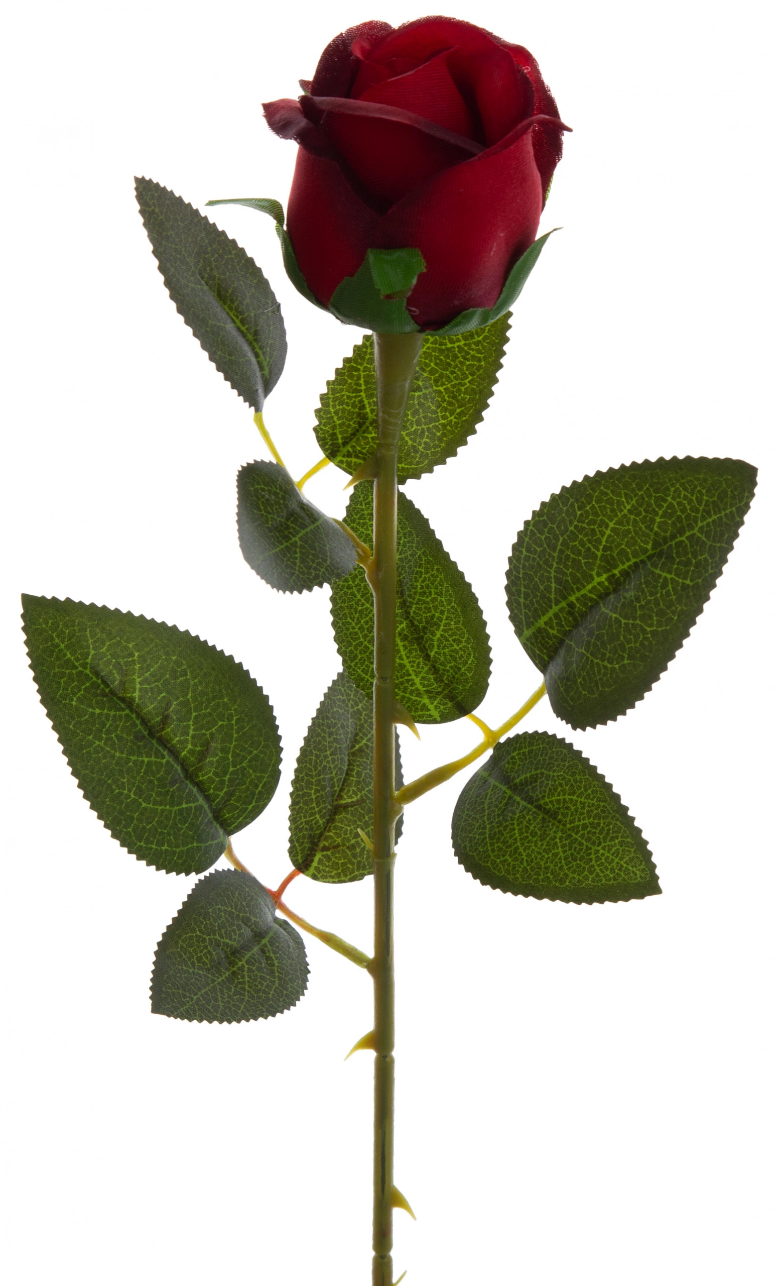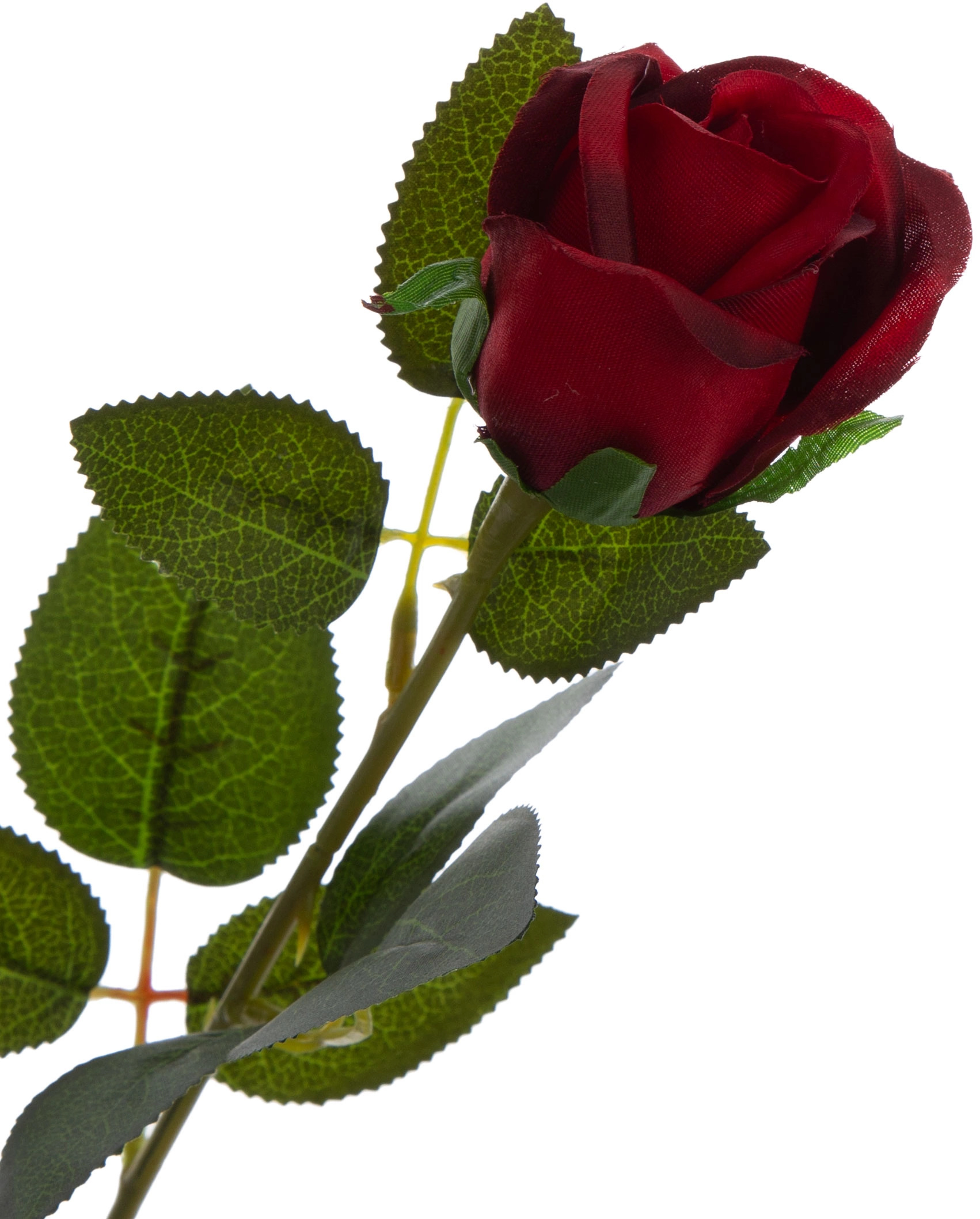 Oferta przedstawia sztuczną różę łodygową. Produkt został wykonany z wysokiej jakości materiału. Róża w kolorze czerwonym, łodyga oraz liście są w kolorze zielonym. Kwiat idealny do wazonu.