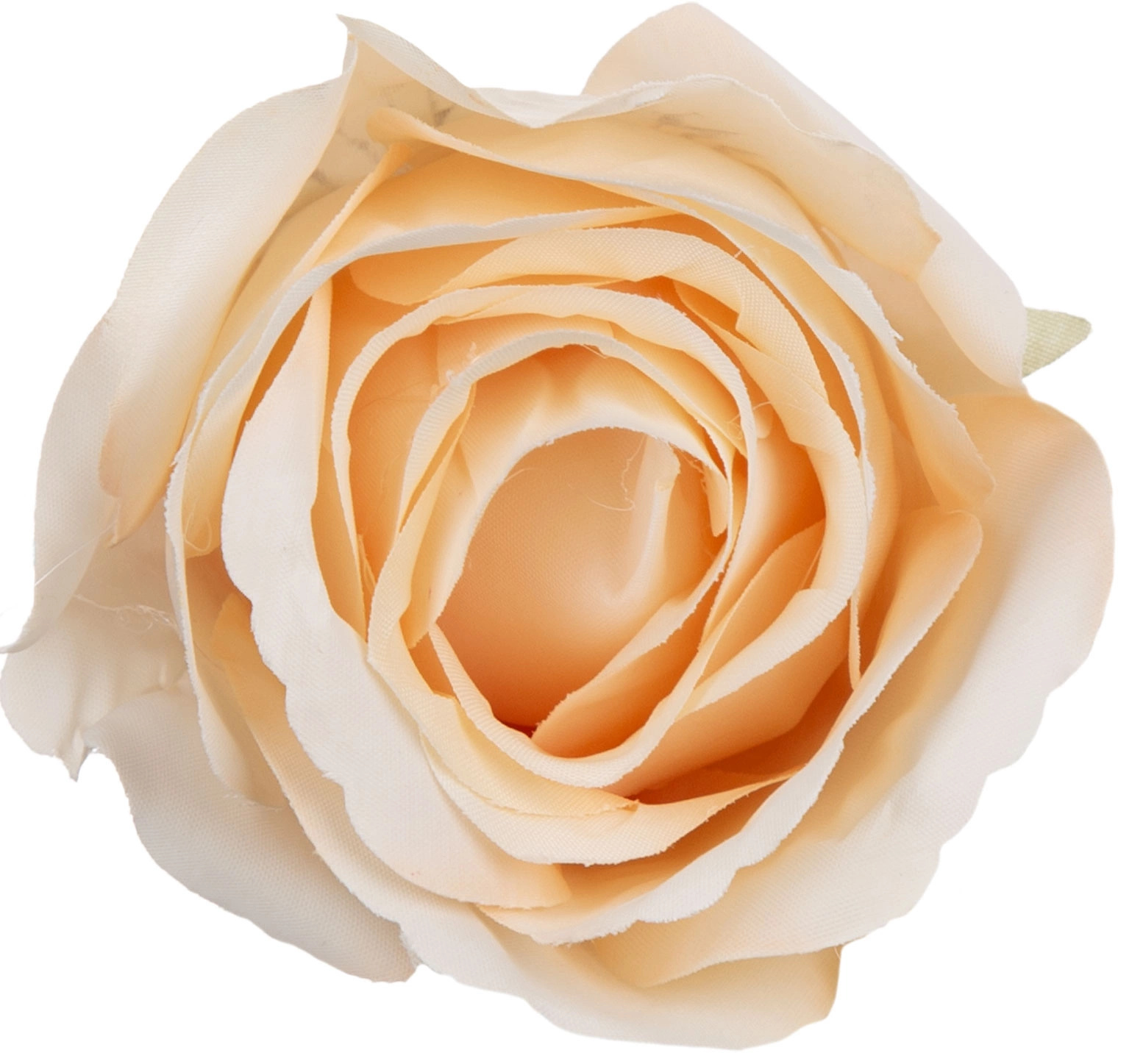 Oferta przedstawia dużą główkę róży wyrobowej. Produkt został wykonany z wysokiej jakości materiału. Główka róży jest w kolorze BRZOSKWINIOWYM. Na odwrocie znajdują się zielone listki o nierównym kształcie i rozmiarze. Róża posiada gęsto osadzone płatki w różnych rozmiarach, co nadaje jej objętości. Dodatkowo róża posiada miejsce na drut wyrobowy lub łodygę. Kwiat idealny do dekoracji, lub kompozycji florystycznych. Opakowanie zawiera 12 sztuk. Na innej naszej aukcji duży wybór łodyg i liści róży.