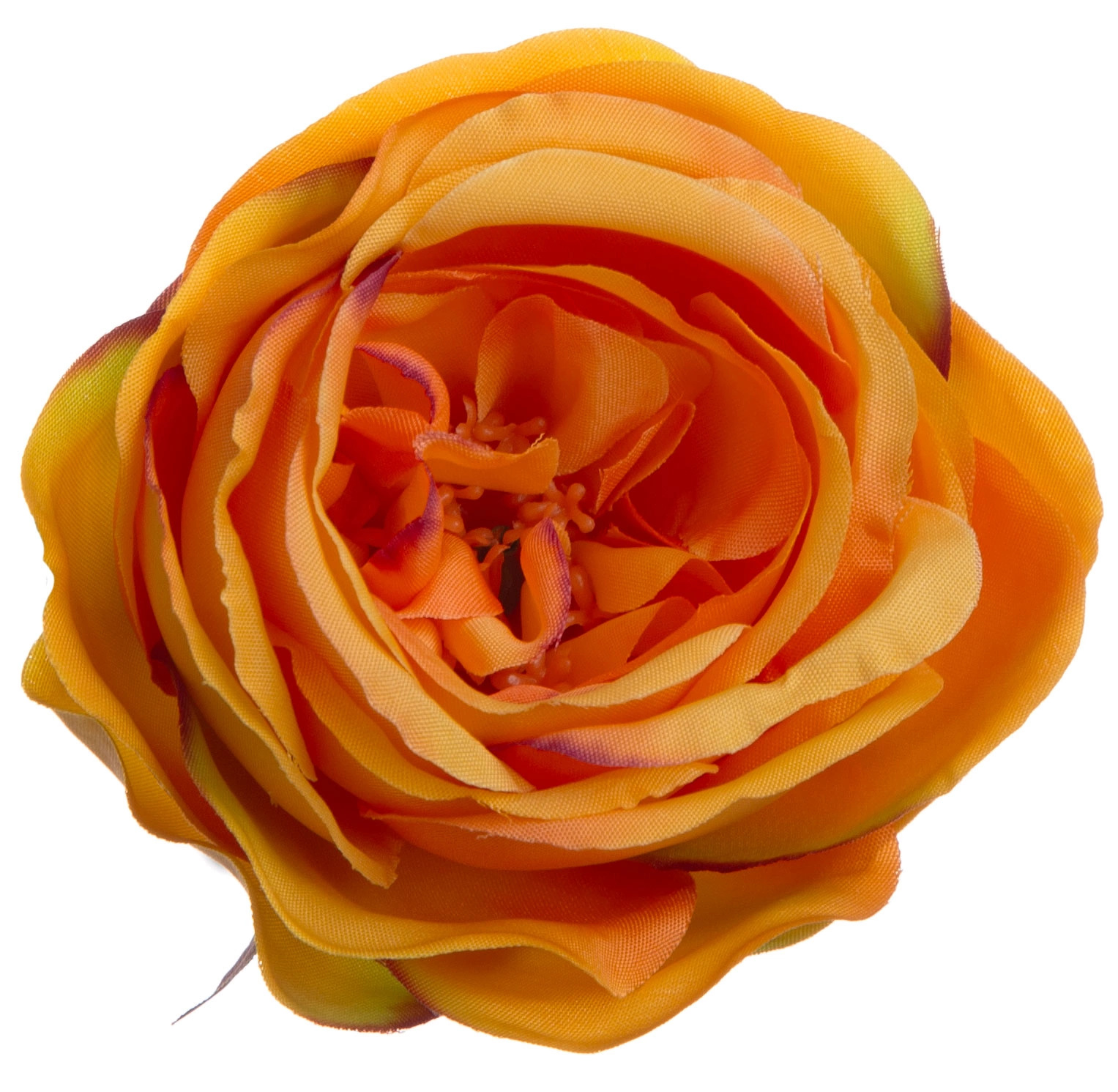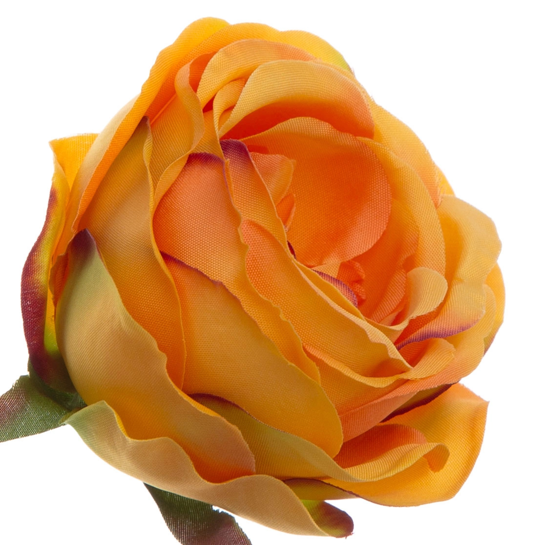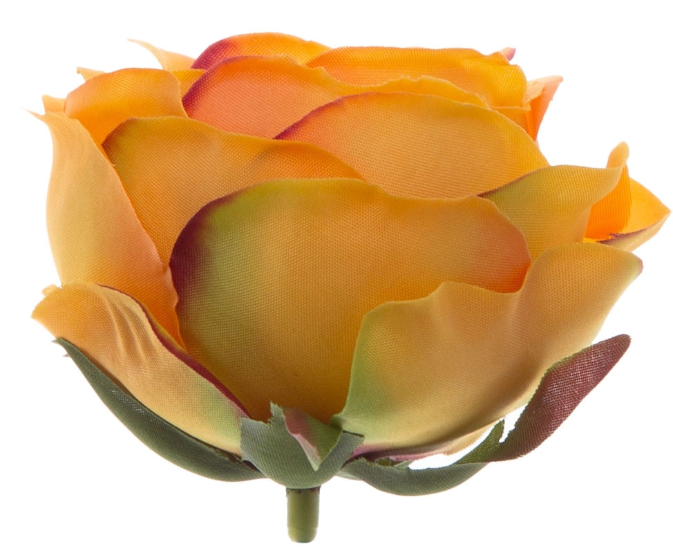 Oferta przedstawia główkę róży wyrobowej. Produkt został wykonany z wysokiej jakości materiału. Główka róży jest w kolorze pomarańczowym ( TEA ). Na odwrocie znajdują się zielone listki. Róża posiada gęsto osadzone płatki w różnych rozmiarach, co nadaje jej objętości. Dodatkowo róża posiada miejsce na drut wyrobowy lub łodygę. Kwiat idealny do dekoracji, lub kompozycji florystycznych. Opakowanie zawiera 24 sztuki. Na innej naszej aukcji duży wybór łodyg i liści róży.