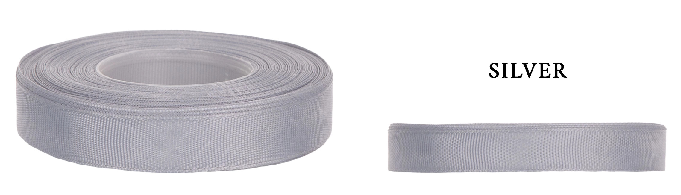 Oferta przedstawia tasiemkę rypsową w kolorze srebrnym.