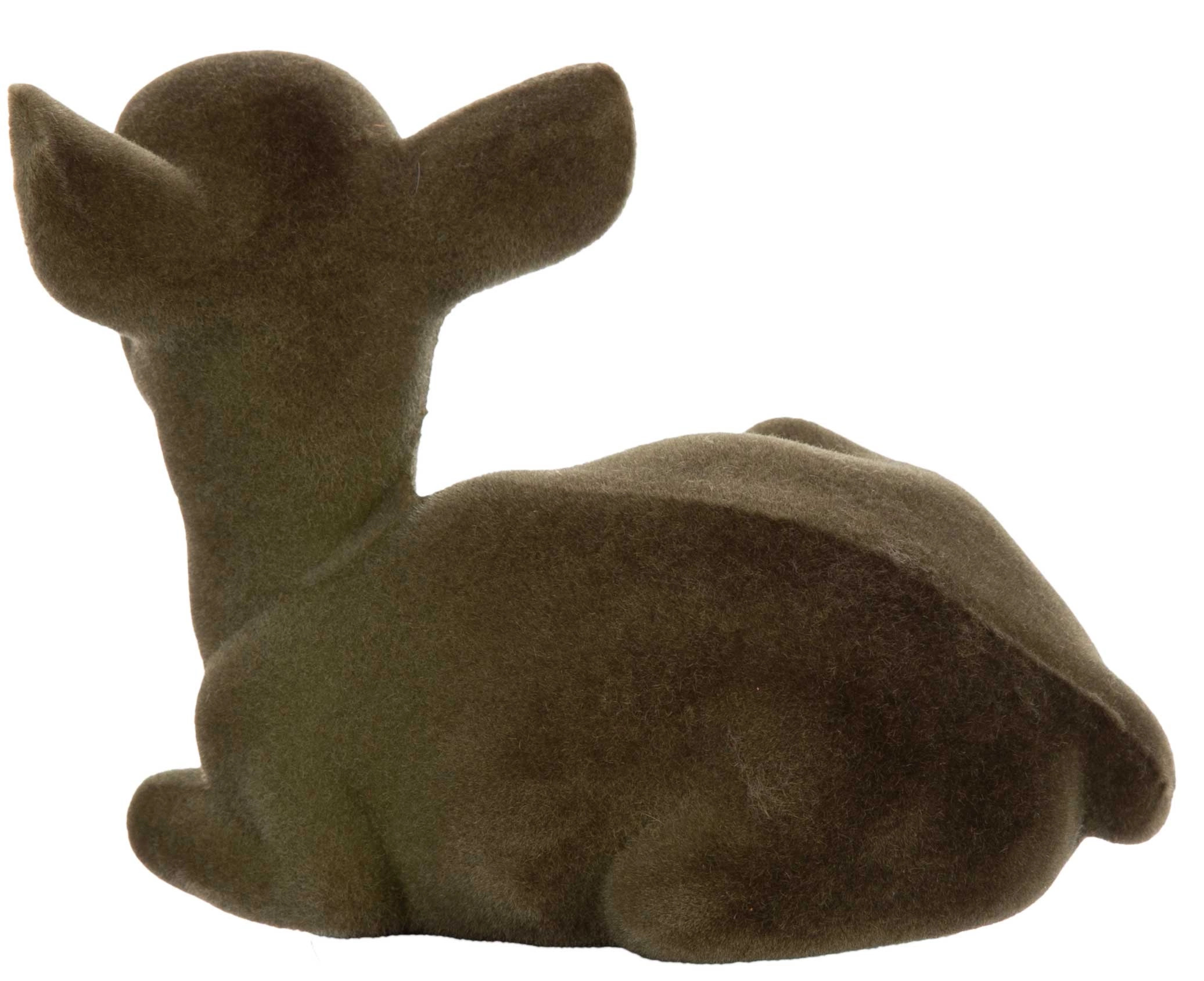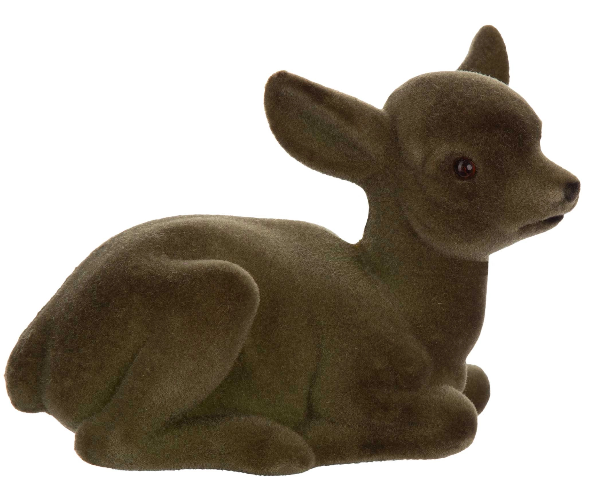 Oferta przedstawia figurkę sarenki wykonaną z tworzywa sztucznego, zieloną flokowaną. Ozdoba idealna do wystroju wnętrz w okresie świąteczno – zimowym.