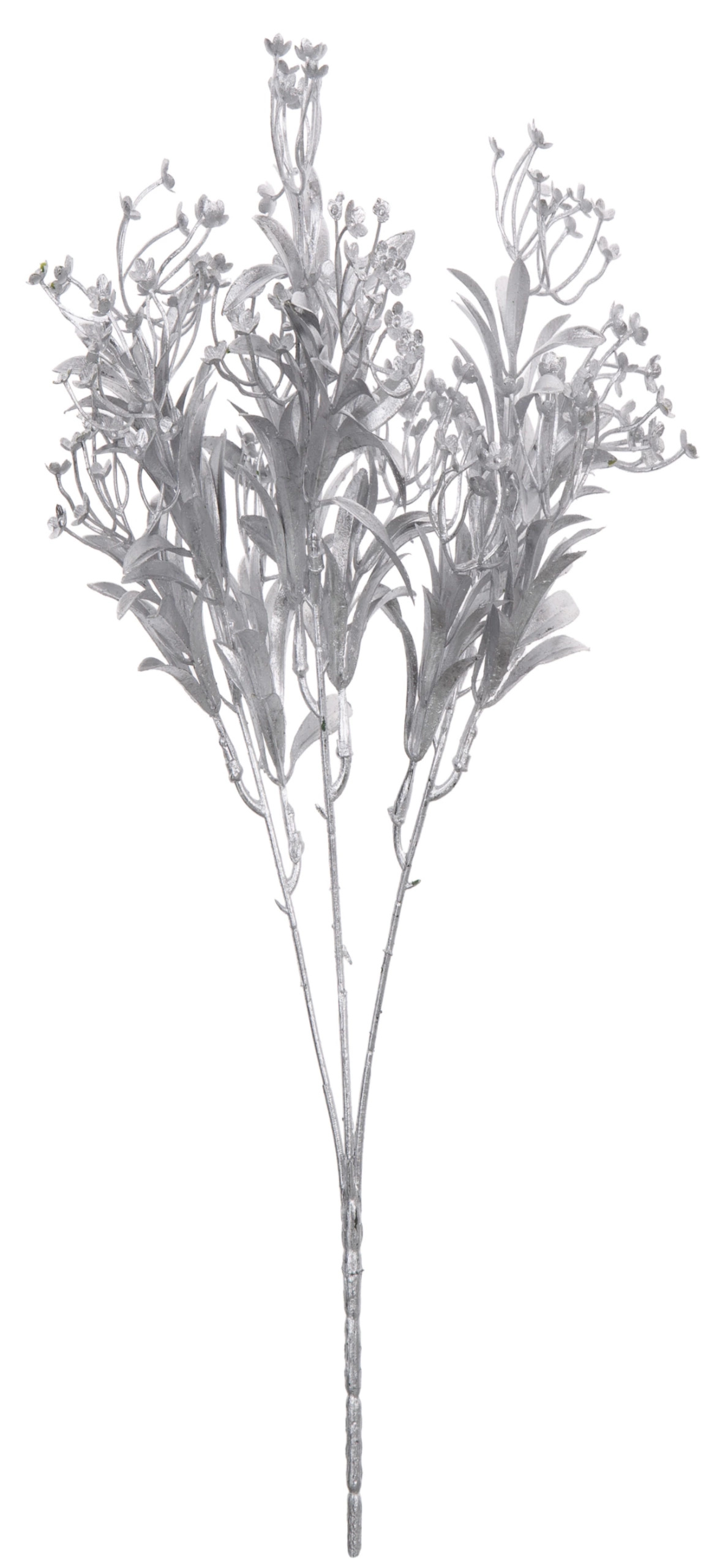 Oferta przedstawia dodatek sztuczny. Bukiet wykonany z tworzywa sztucznego w kolorze srebrnym, posiada trzy gałązki  Bukiet idealny jako dodatek do kompozycji florystycznych.