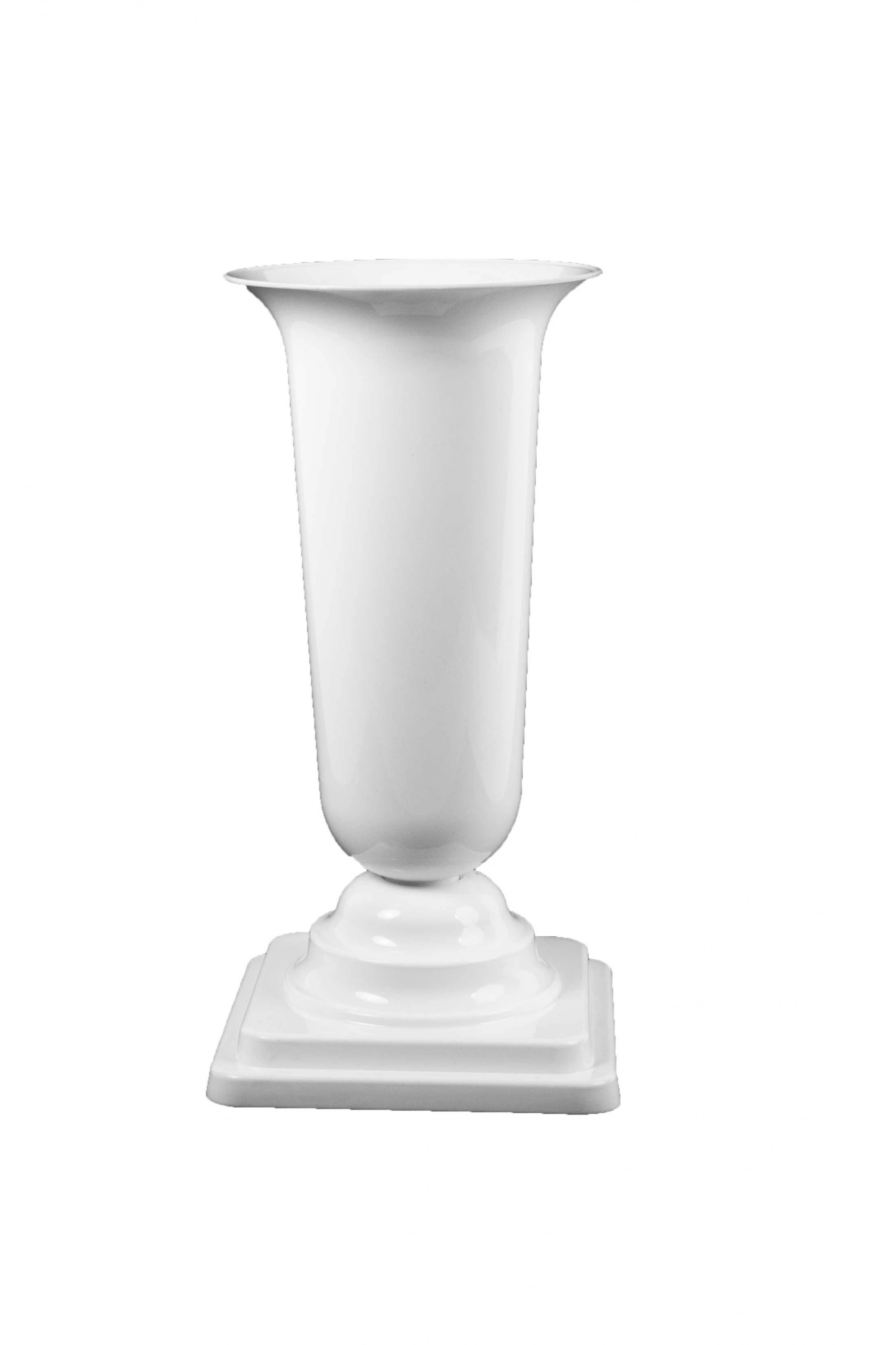 Oferta przedstawia wazon / flakon na podstawce w kolorze białym, wykonany z wysokiej jakości tworzywa sztucznego. Produkt doskonały do kompozycji nagrobnych.