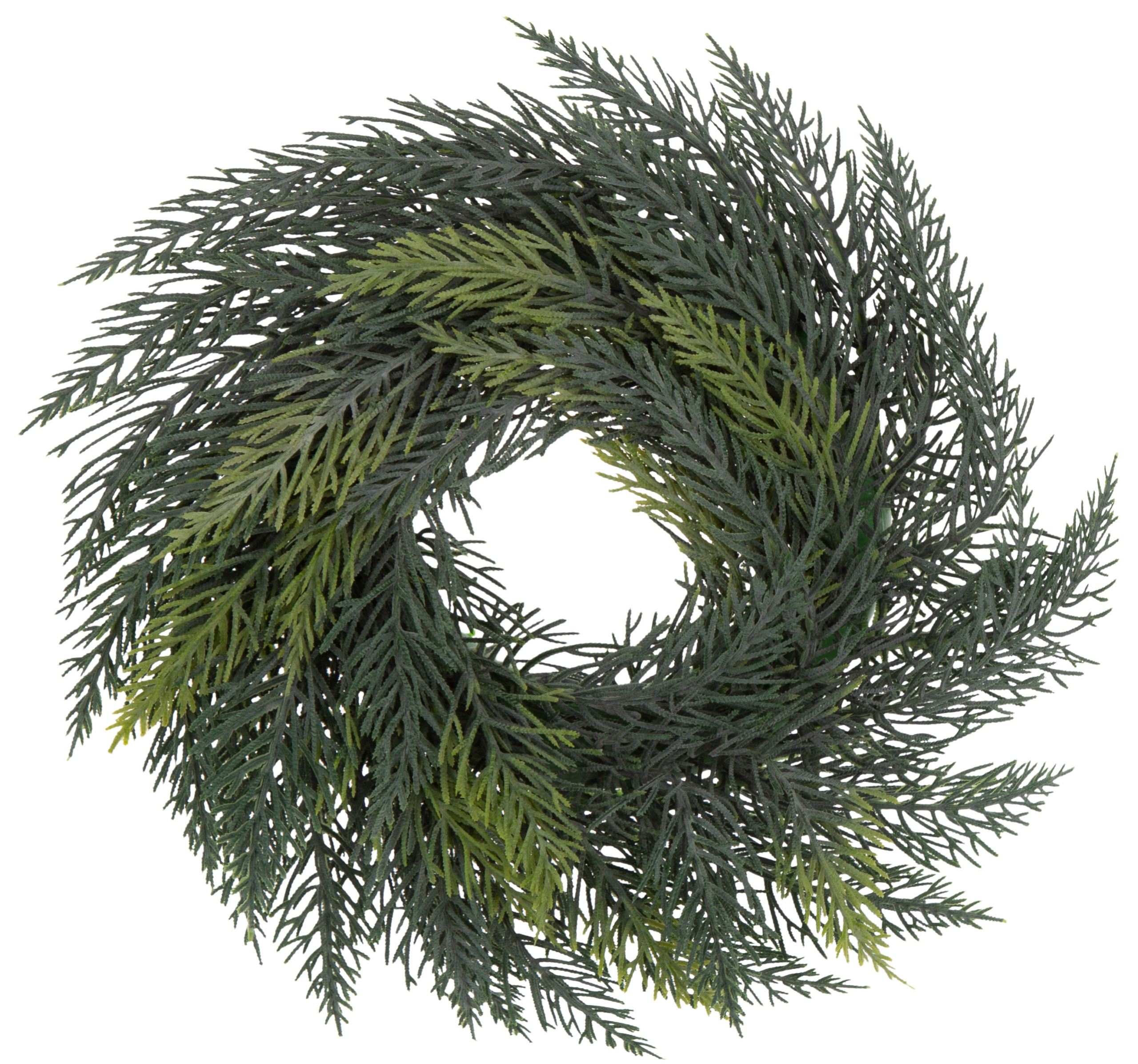 Wianek iglasty wykonany z tworzywa sztucznego. Wianek idealny do dekoracji.