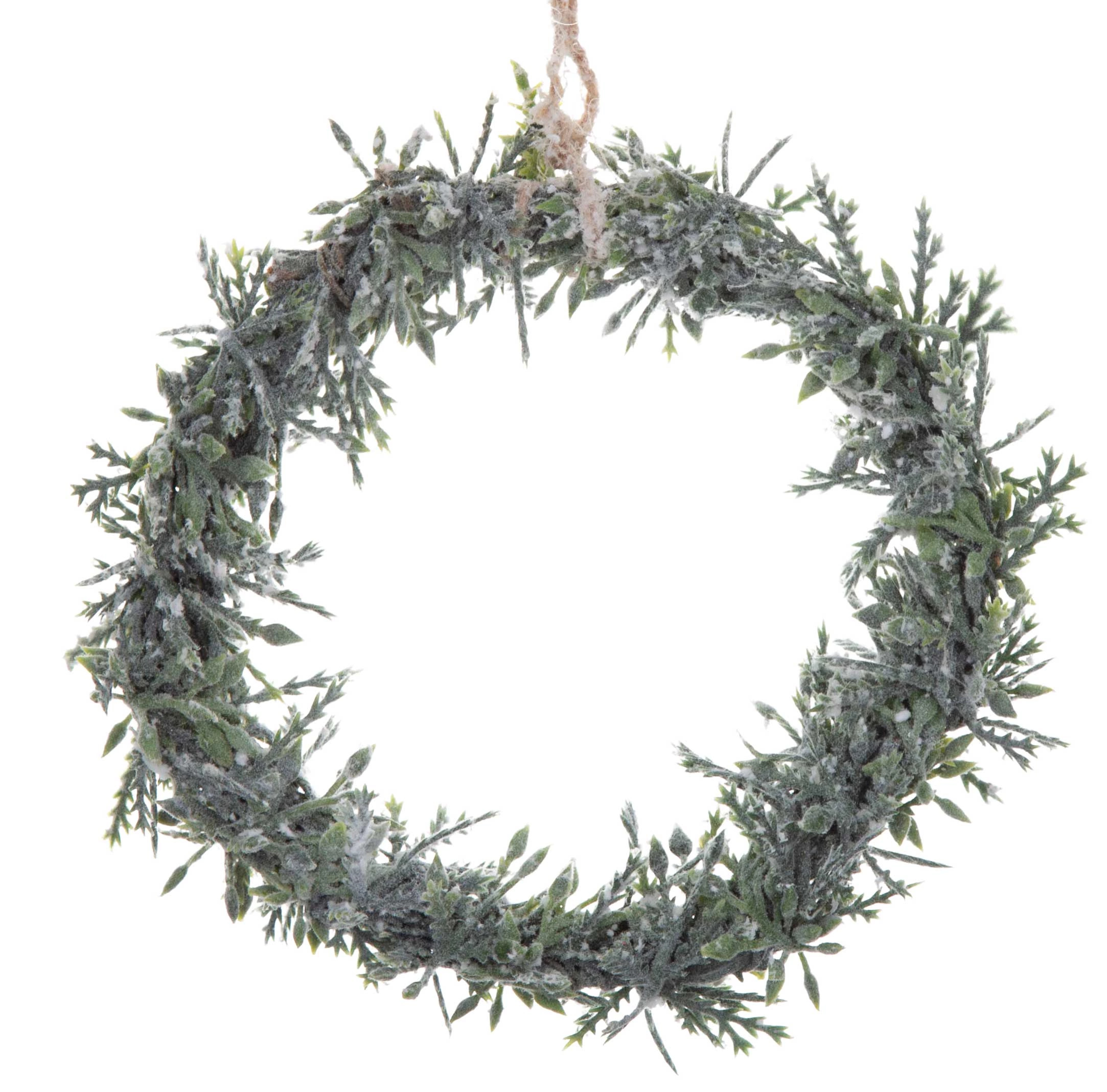 Oferta przedstawia wianek ośnieżony. Wianek doskonały do dekoracji świątecznych.