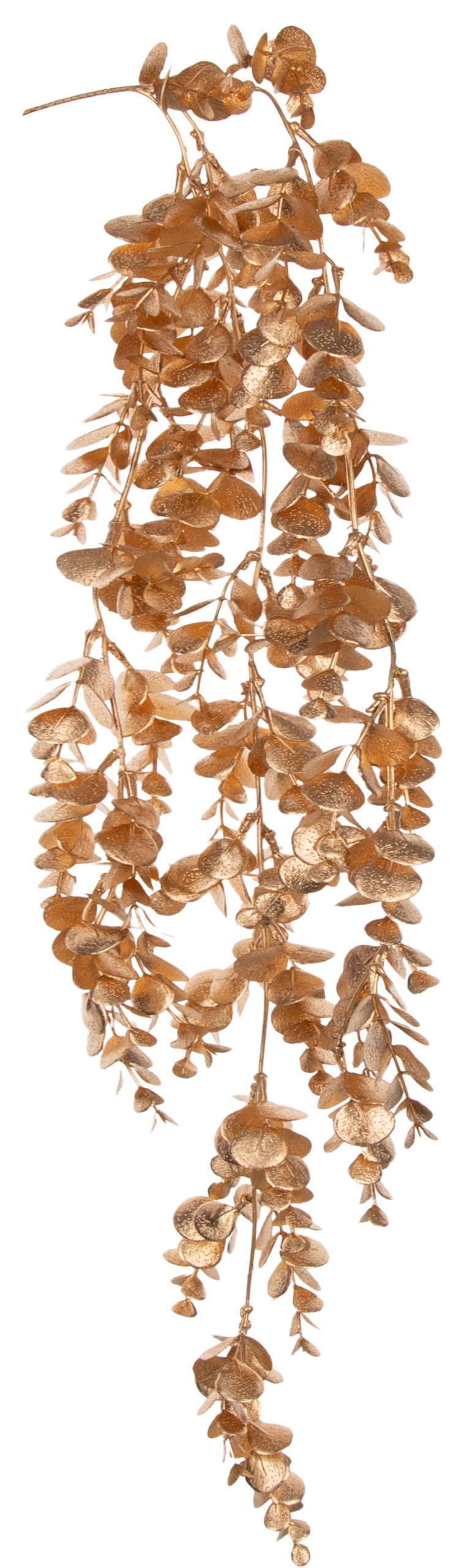 Oferta przedstawia roślinę wiszącą eukaliptus. Roślina wykonana z tworzywa sztucznego w kolorze ZŁOTYM. Roślina idealna jako dodatek kompozycji florystycznych.